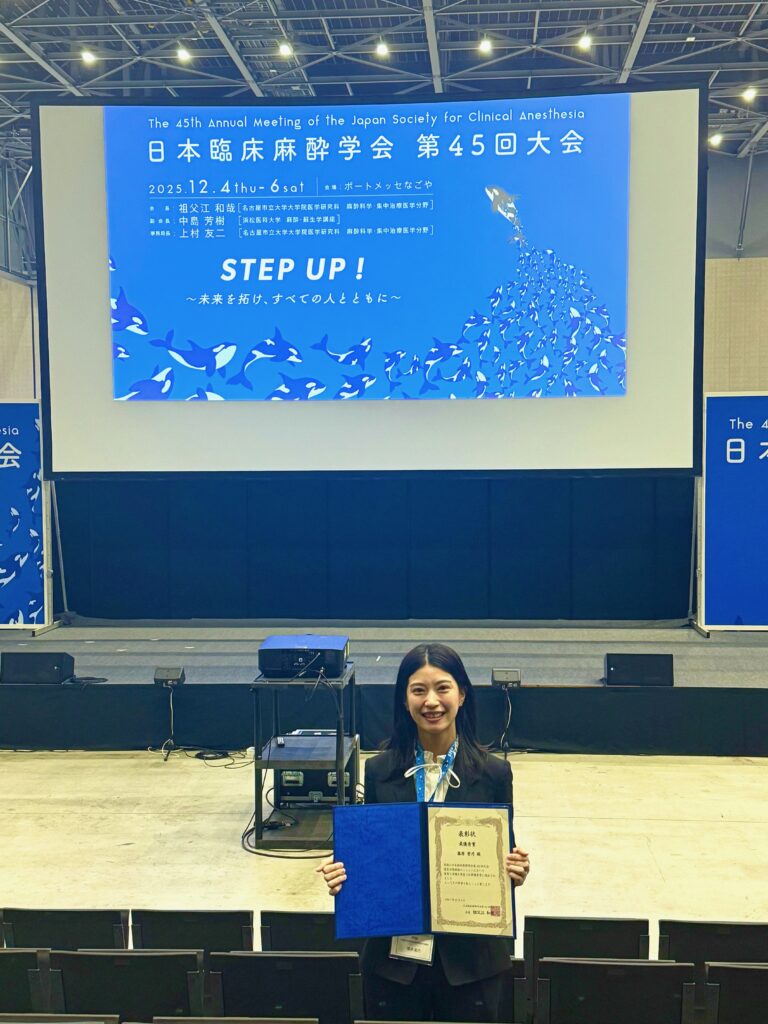 2025/12/6 日本臨床麻酔学会において最優秀演題賞を頂きました!